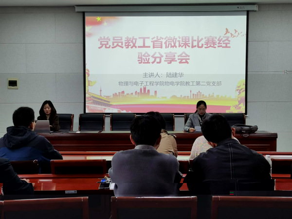 為強化黨建引領,促進黨建與教學深度融合,10月23日下午,我院教職工第二黨支部在逸夫樓東學術報告廳成功舉辦“黨員教工省微課比賽經驗分享會”。報告由曾在省微課教學比賽中獲得二等獎的黨員教師陸建華老師主講,教工第二黨支部書記、系主任施文娟主持了報告會。