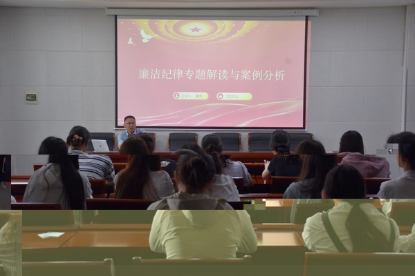 一堂廉課,銘記紀律底線之重。學院黨委副書記唐傑圍繞廉潔紀律,通過案例為畢業生作廉潔教育,在同學們心中種下廉潔的種子。他強調,畢業生黨員未來不論是在學習還是在工作崗位上都要遵紀守法,堅定廉潔信念,恪守廉潔底線。